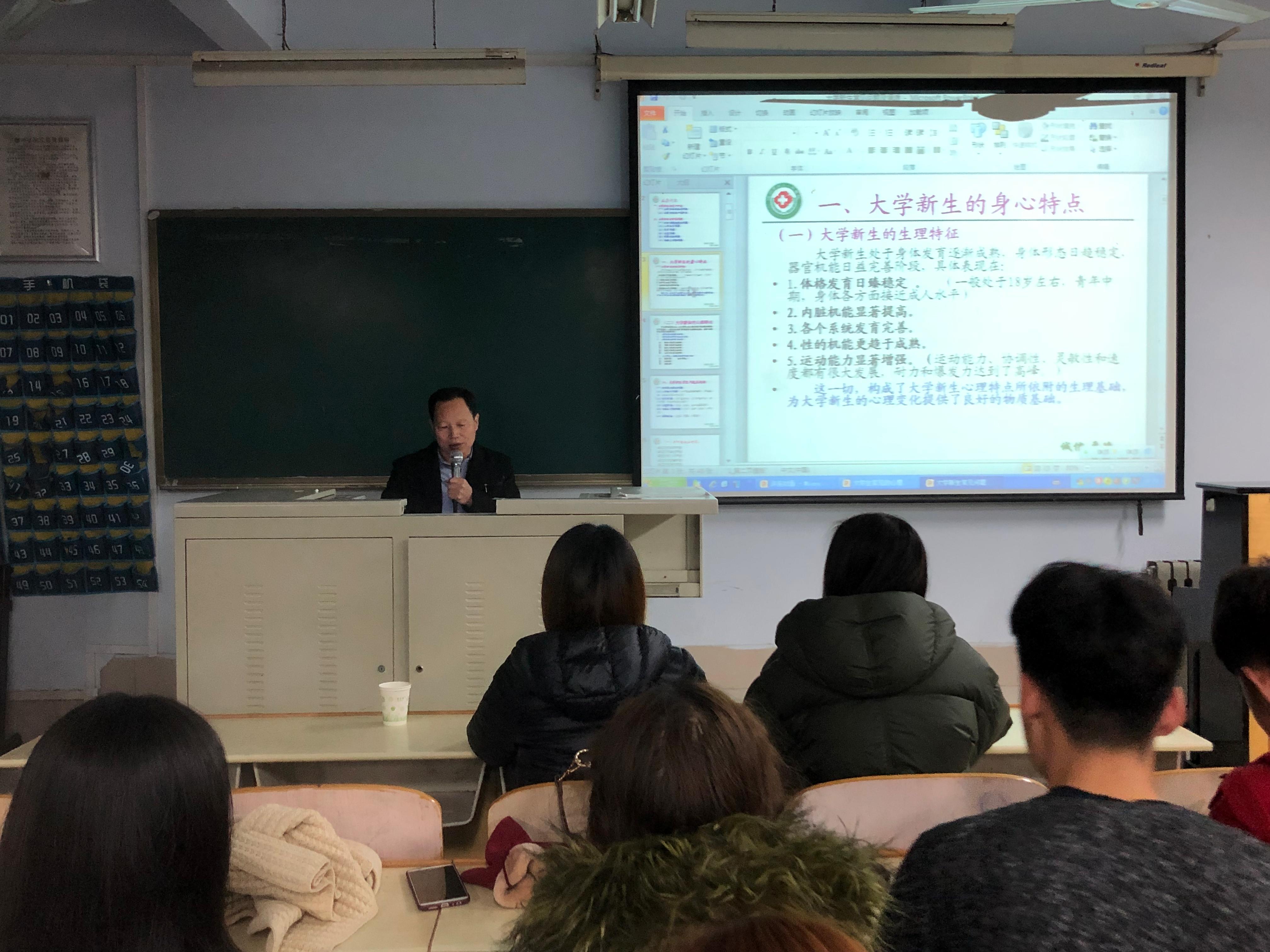 11月30日晚7点,太阳成集团tyc234cc在音乐楼2004教室举办了以"健康伴我心,携手大学路" 为主题的心理健康知识讲座。团总支书记史璇、辅导员李曼宁及2018级全体同学到场参加。
