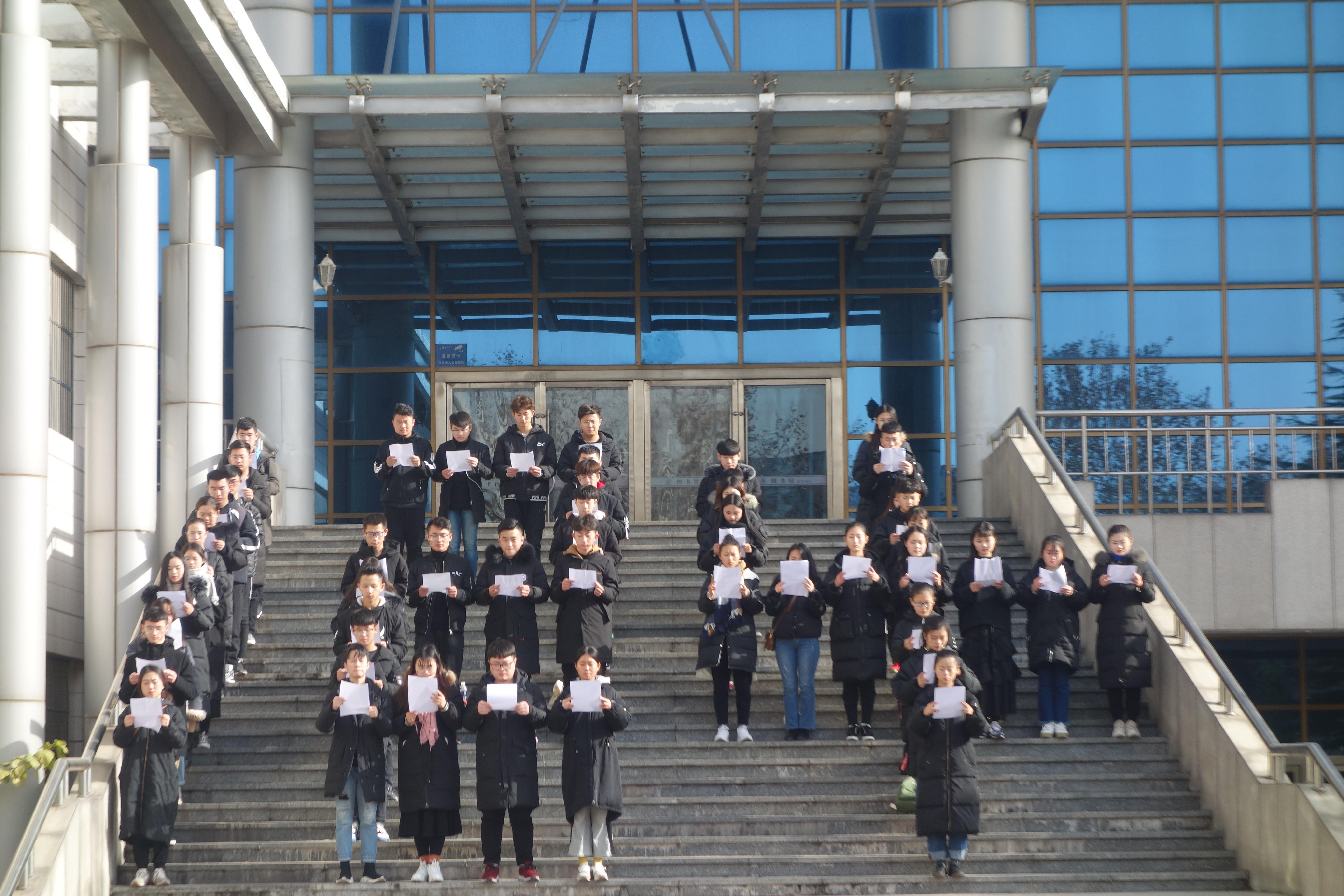 12月4日,是我国第五个“国家宪法日”,为深入学习宣传贯彻党的十九大精神,弘扬宪法和法律权威,宣传社会主义法治精神,进一步增强公司师生的法治观念,建设法治校园,公司举办了“百人朗诵宪法”活动。政治辅导员李曼宁以及2018级全体员工参加。