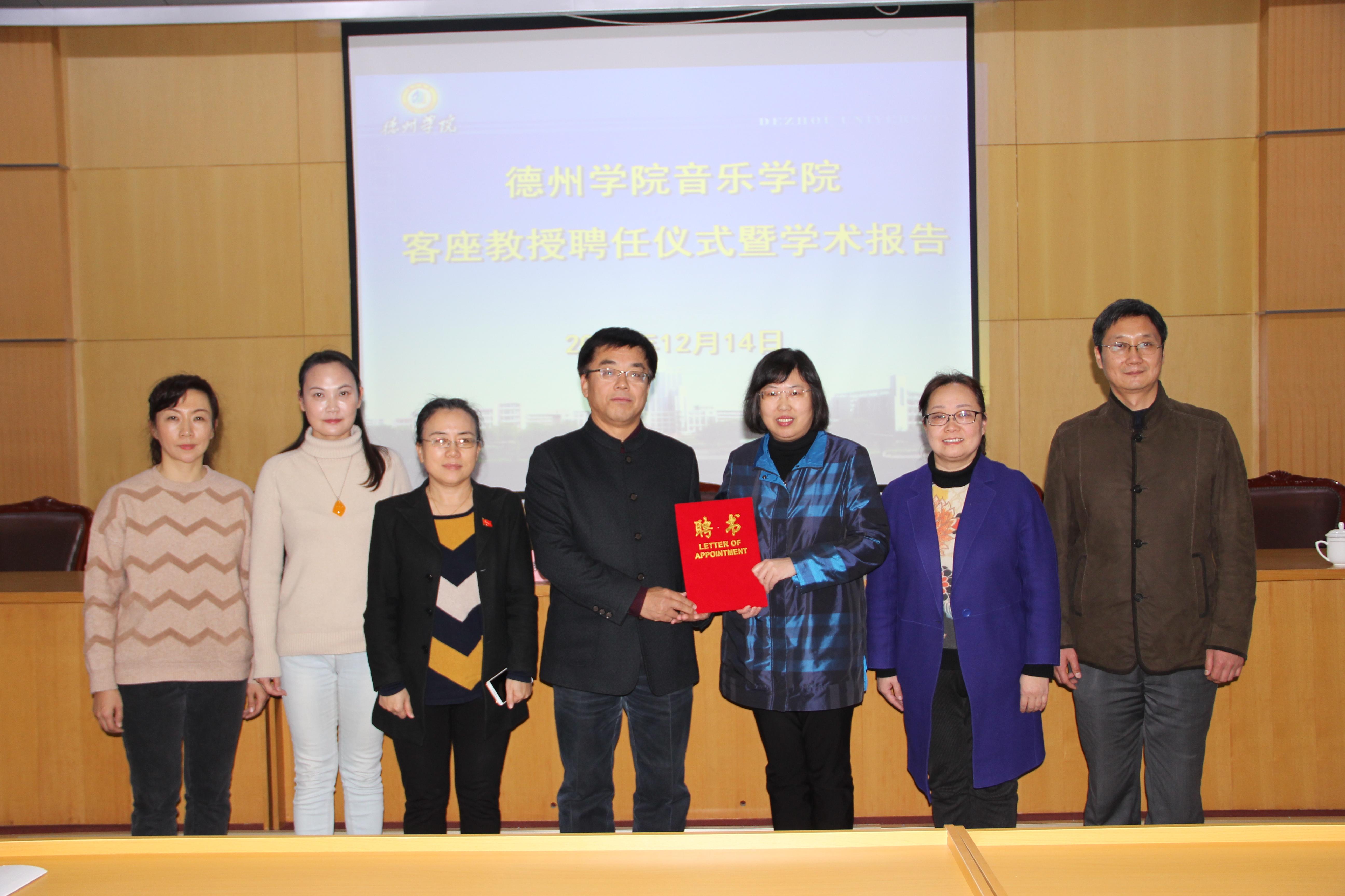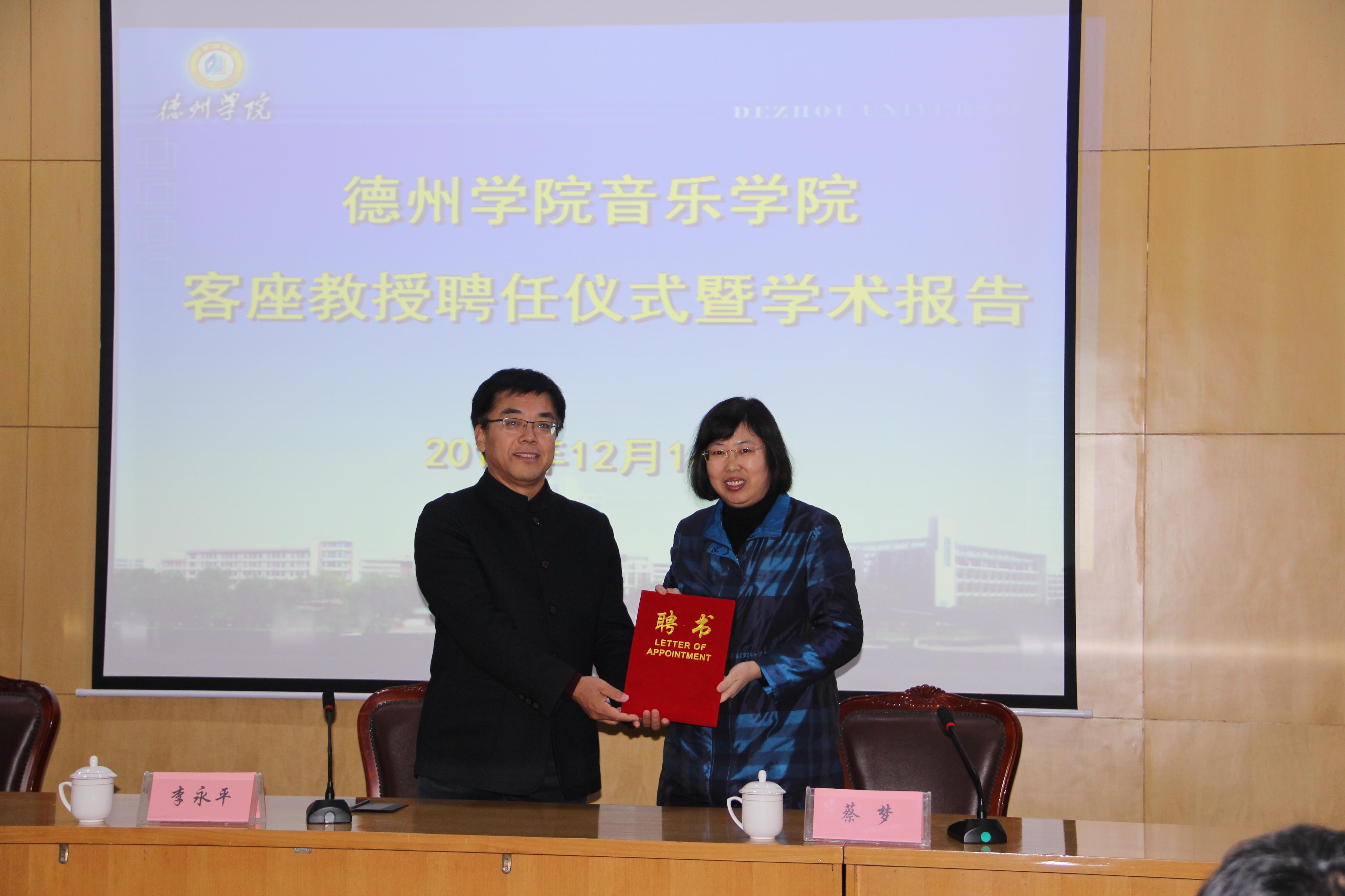 随后,李董事长为蔡梦颁发聘书。受聘仪式结束后,蔡梦教授为在场的师生作了题为《以学科—专业一体化理念研制音乐教育人才培养》的学术报告。分析了普通高校专业音乐教育与普通公司音乐教育存在的不同与交集,提出了音乐教育需要专业与学科一体化的观点,指出学科发展定位需要分类分层实施相对精准化的人才培养,并对课程体系进行了细化分析。
