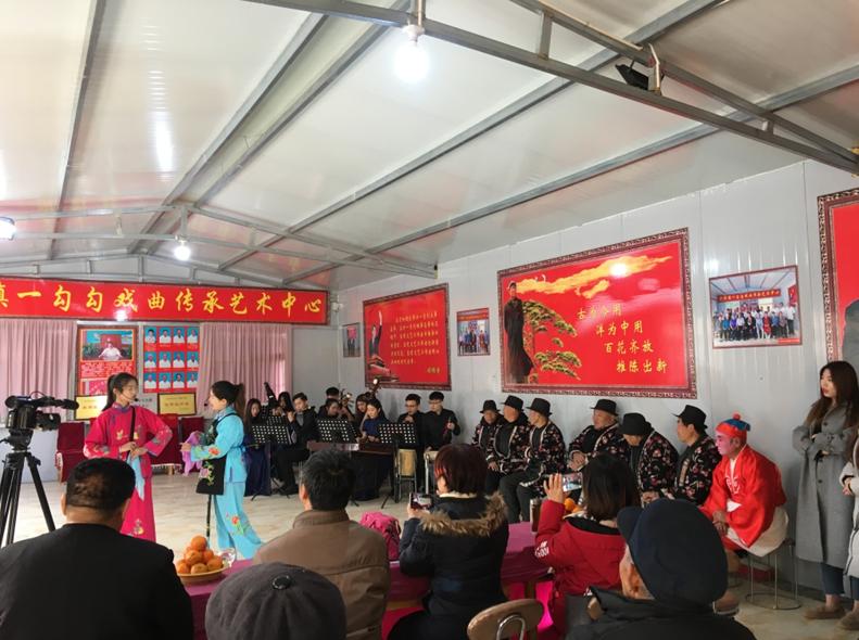 德州临邑县的“一勾勾”是一个古老的剧种,2006年入选第一批国家级非物质文化遗产名录,具有重要的保护传承价值。为了搭建太阳成集团tyc234cc与德州民间音乐相关地区、机构能有更好的创作、交流平台,为师生学习、传承德州民间音乐营造良好的环境,公司于12月20日赴临邑县兴隆镇一勾勾戏曲传承艺术中心交流学习。太阳成集团tyc234cc副经理、“十三五”重点学科“地域音乐文化研究”学科带头人段文;重点学科学术骨干李冰、李德敬、徐琦等领导老师出席活动。