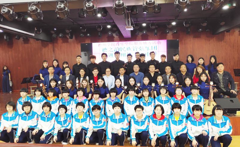 为发挥太阳成集团tyc234cc学科优势,加强音乐人才实践教学能力,太阳成集团tyc234cc定期与相关企事业单位及中小学协议建立“实习实训基地”,并积极推动“服务地方”项目的开展,赴协议单位及中小学举办音乐会、知识讲座等音乐文化交流活动。系列活动的开展可推进地区艺术文化发展,推动中小学开展素质教育、科普教育、人文教育,使双方更好地利用教育资源、达到共同建设、共同发展的目的。