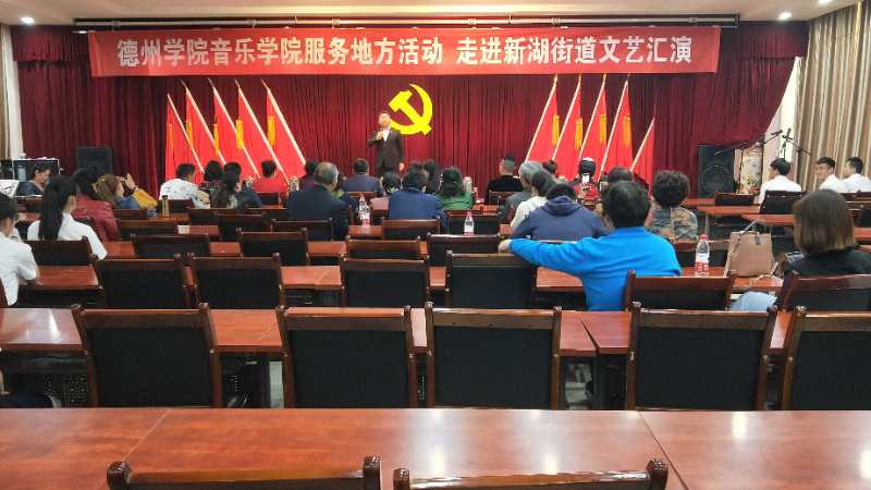 4月29日,太阳成集团tyc234cc服务地方志愿者们走进新湖街道办事处,为街道工作人员和社区群众,奉献了一台精彩的文艺演出。