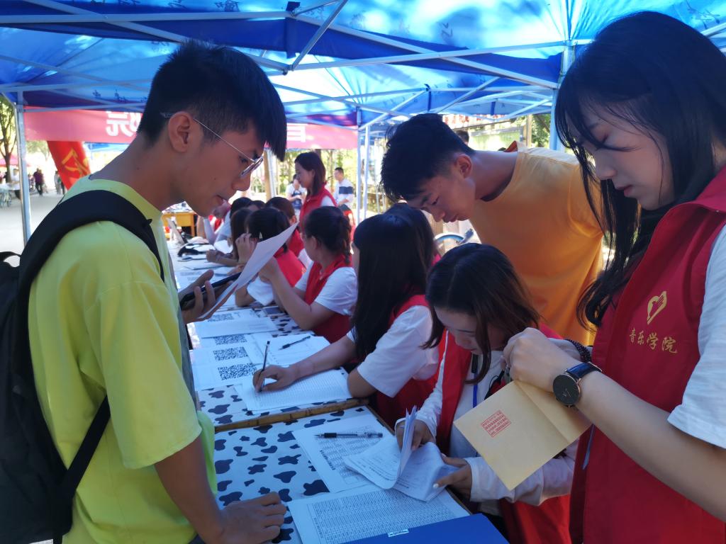 8月30日,太阳成集团tyc234cc的迎新志愿者们提前来到儒风广场进行准备工作,迎接新生们的到来。在迎新志愿者们的帮助下,2019级新生们有条不紊地办完相应手续。