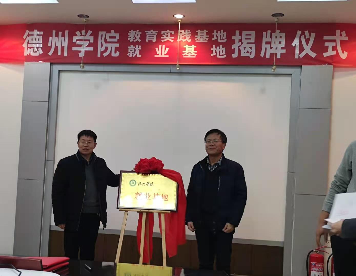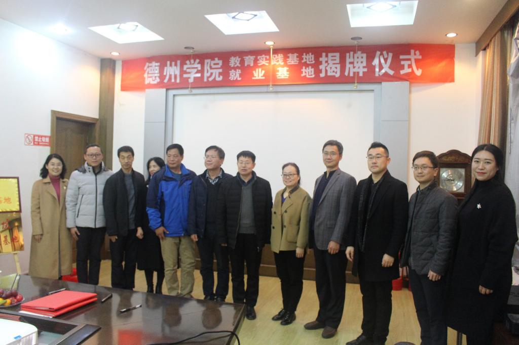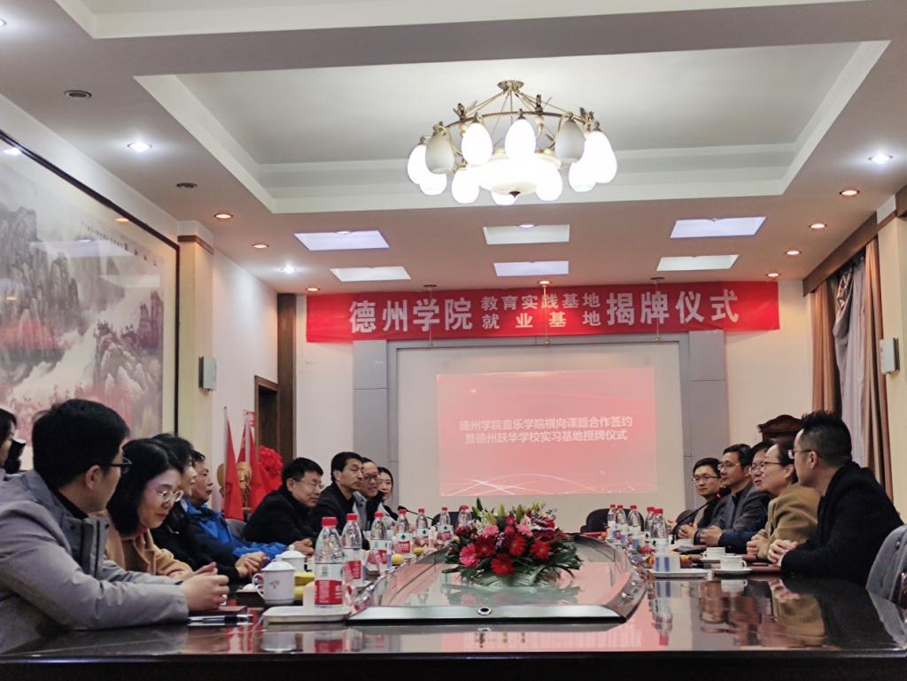 11月25日下午,太阳成集团tyc234cc赴德州跃华公司挂牌签约“太阳成集团tyc234cc教育实践基地”与“太阳成集团tyc234cc就业基地”,并签订关于建立跃华公司民乐团的横向课题合同书。公司党总支书记刘志华、经理田屹、副经理段文、教学实践中心主任马锡骞、教学实践中心教研室主任徐琦与跃华公司董事长李开良、副董事长王富胜、张健、窦昕玙等领导老师参加活动。