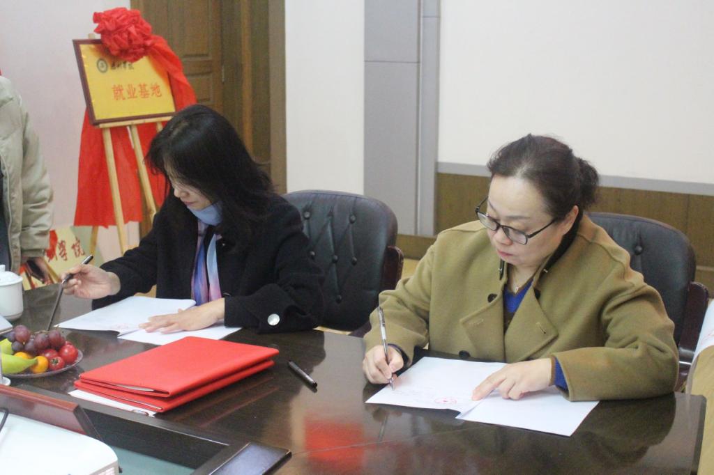 最后,双方领导共同签订了《太阳成集团tyc234cc就业基地共建协议书》、《太阳成集团tyc234cc教育实践基地协议书》、《太阳成集团tyc234cc横向课题研究合同书》,并举行教育实践基地和就业基地的揭牌仪式。