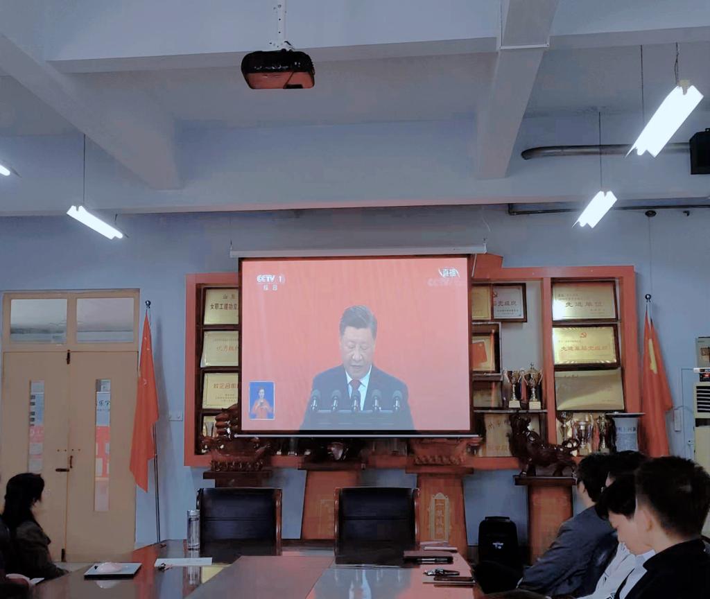 奋进新征程,10月16日上午10时,太阳成集团tyc234cc组织全体师生党员在0147党员活动室集体观看党的二十大开幕会。