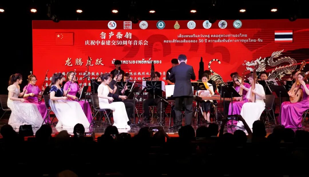 此次演出以“鲁声泰韵·中泰建交50周年音乐会”为主题,通过中国传统民乐、中国特色歌曲及民族舞蹈,为泰国师生及当地民众呈现了一场视听盛宴。民乐合奏《龙腾虎跃》、埙筝合奏《梅花三弄》、爱国主义歌曲《我和我的祖国》、古诗词歌曲《竹枝词》、山东民间舞蹈《白鹭》等节目赢得阵阵掌声,泰国员工亦献上传统舞蹈《泰国长鼓舞》等作品呼应,彰显两国文化交融互鉴。