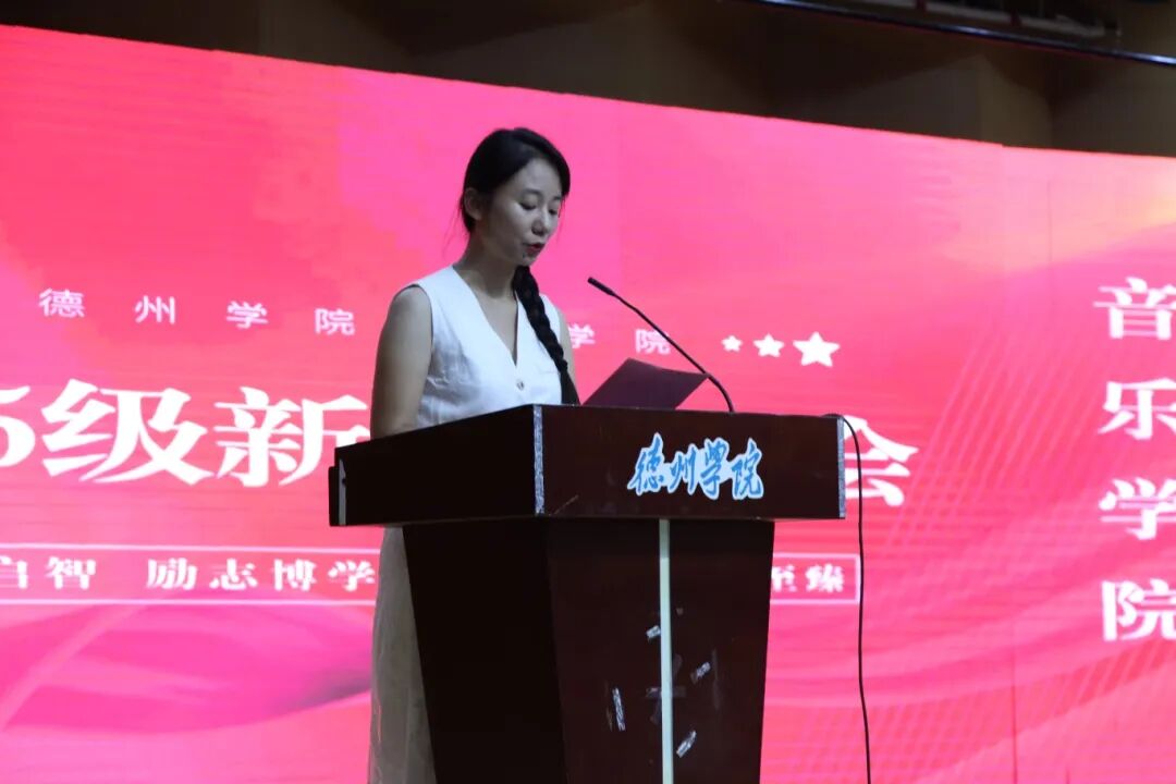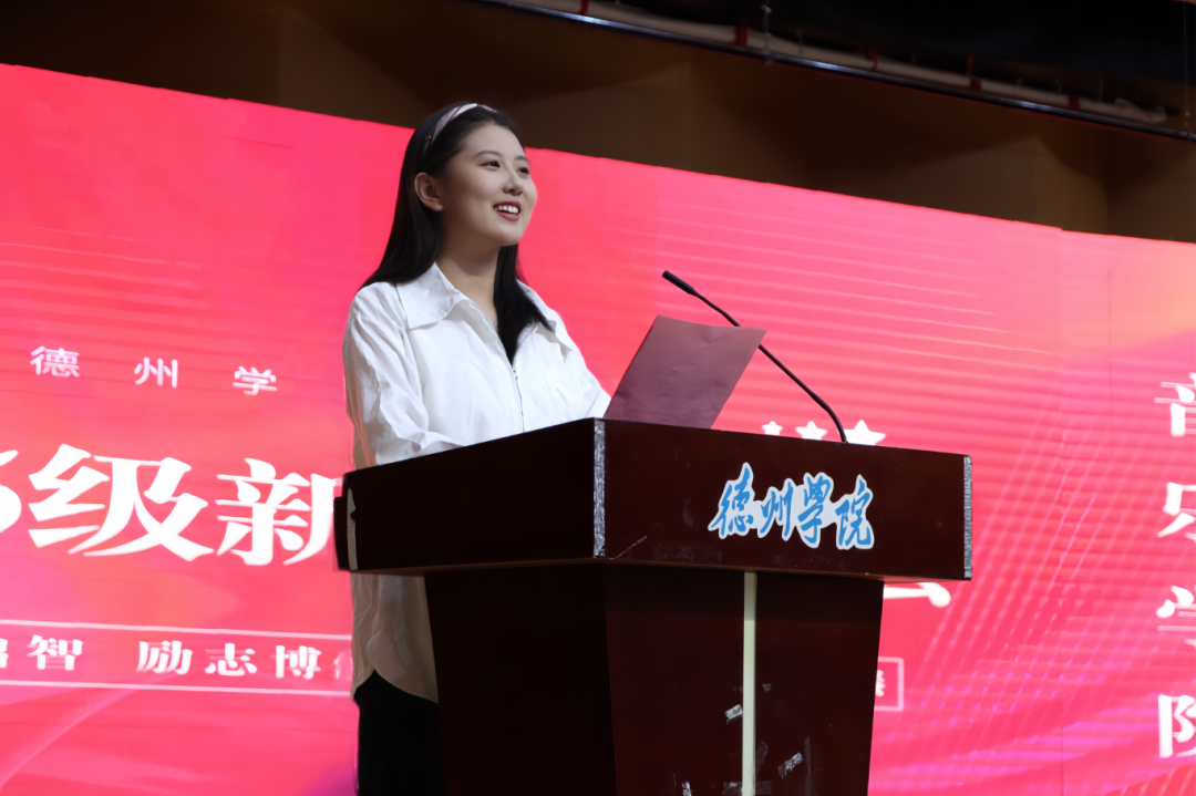 新生代表袁千惠表达了对老员工活的憧憬与期待。她代表全体新生承诺,将牢记师长嘱托,以“强国有我”的信念砥砺前行,秉持勤学善思的态度,尽快适应校园生活,在探索中成长,在奋斗中绽放,努力成为有理想、敢担当的新时代青年。