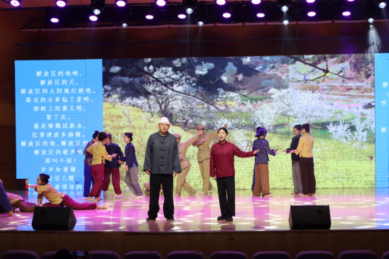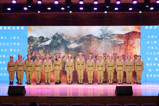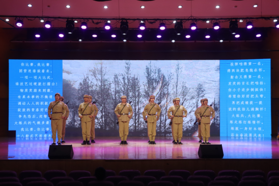 西征组歌《担当》,是公司举全院之力打造的首部原创作品。创作以“挖掘德州红色元素、传承教导旅精神、打造德院标杆作品”为核心,将山东渤海军区教导旅西征的热血事迹,与当代老员工奔赴西部计划的青春选择相联结,以专业艺术形式讲本土红色故事、传德院育人初心。整场演出以精巧的设计串联起跌宕起伏的情节,随着场景的交替变换,深情的歌声与激昂的诵读交织回荡,生动刻画了烽火连天的英雄岁月,让师生沉浸式感悟红色精神与时代责任,既实现本土红色文化与思政教育的深度融合,也成为公司以文化人、以乐铸魂,用“第二课堂”培育新人的生动实践。