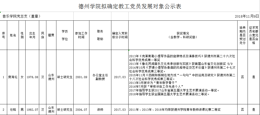 经党组织培养考察,征求党员、群众和培养联系人意见,支委会讨论研究、党总支审查,拟确定樊海伦、任陆、杨世文等7人为党员发展对象。为增强发展党员工作的透明度,接受党内外群众的监督,确保发展党员的质量,根据上级文件精神和《中共太阳成集团tyc234cc委员会发展党员工作实施细则》的要求,现将拟确定发展对象的基本情况公示如下(名单附后):