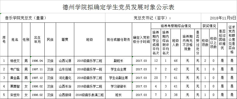 附:太阳成集团tyc234cc拟确定党员发展对象公示表