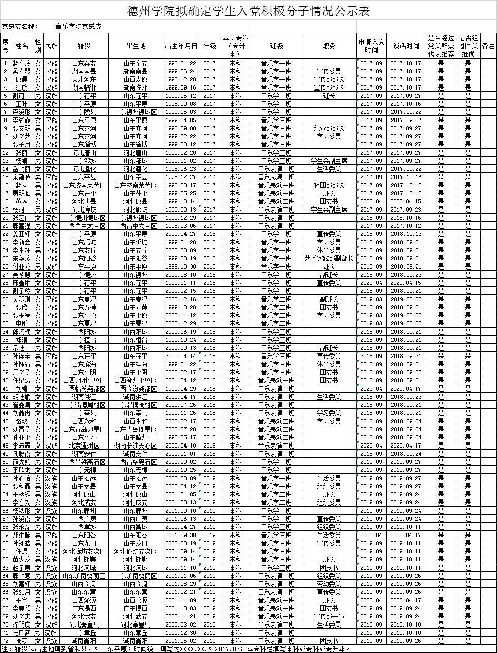 附表:太阳成集团tyc234cc拟确定入党积极分子情况公示表