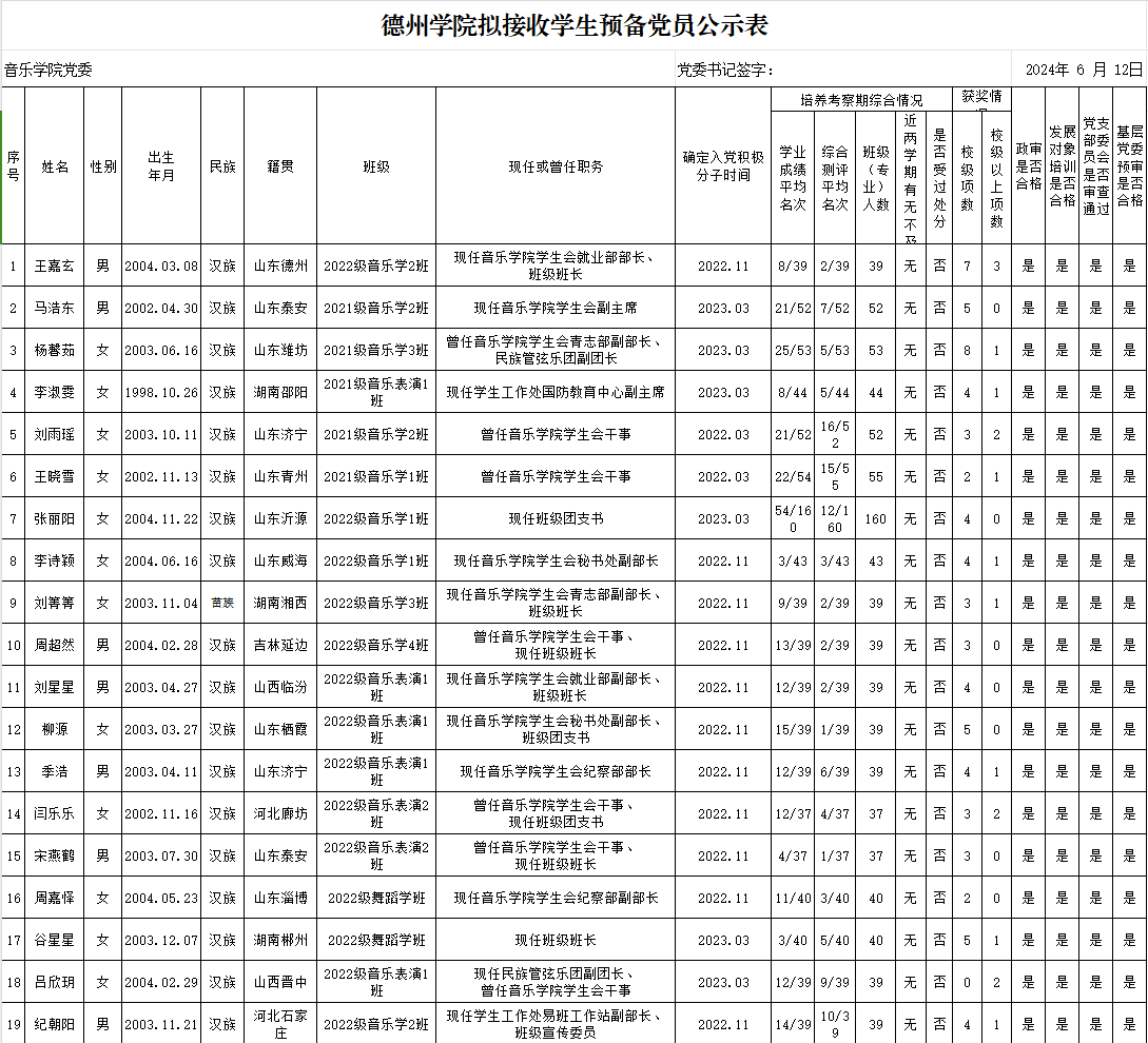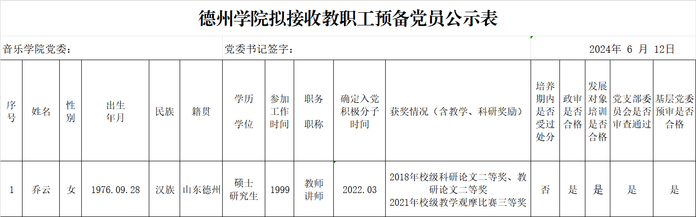 经党组织培养考察,征求党员、群众和培养联系人意见,支委会讨论研究、政治审查、集中培训、基层党委预审,拟接收乔云等20名同志为中共预备党员。为增强发展党员工作的透明度,接受党内外群众的监督,确保发展党员的质量,根据上级文件精神和《中共太阳成集团tyc234cc委员会发展党员工作实施细则》的要求,现将拟接收预备党员的基本情况公示如下(名单附后):