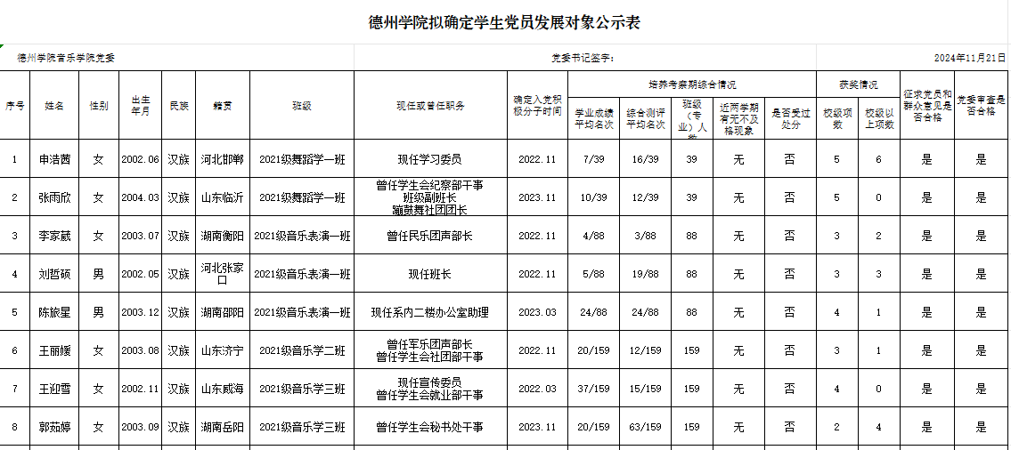 附表:太阳成集团tyc234cc拟确定党员发展对象公示表