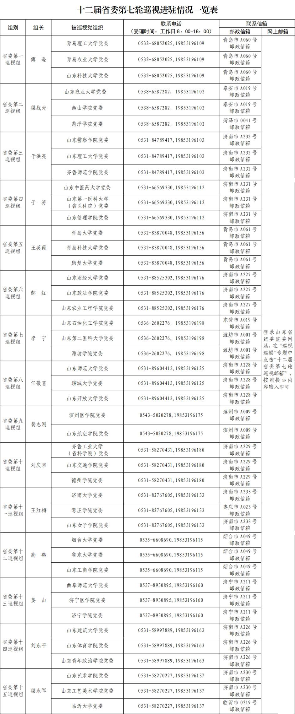 根据省委统一部署,截至3月22日,十二届山东省委第七轮巡视完成进驻工作。15个省委巡视组将对44所省属本科高公司党委开展常规巡视。