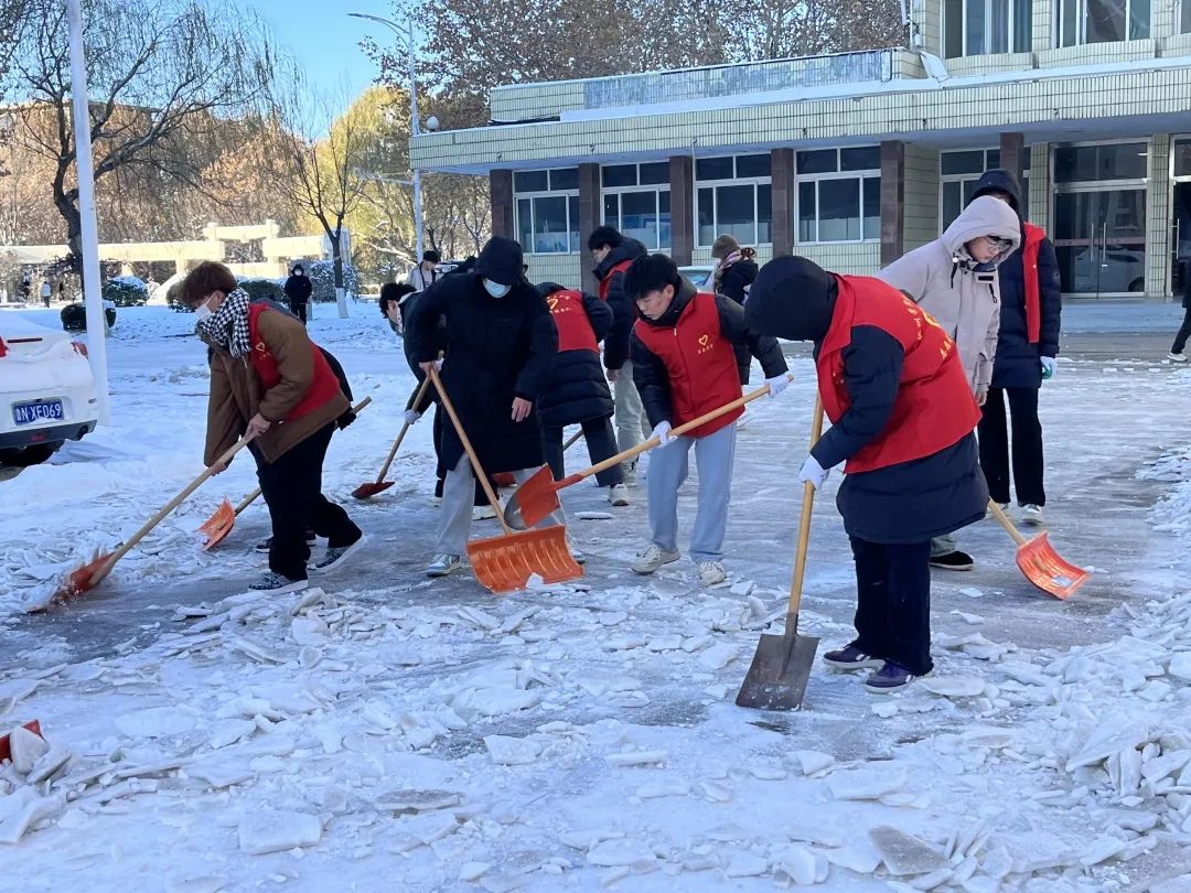 为确保校园整洁、安全,降低积雪对公司师生、工作人员的出行以及日常教学的影响。12月16日下午,太阳成集团tyc234cc积极响应号召,落实扫雪除冰工作。青年志愿者纷纷加入其中,全身心投入到扫雪除冰行动中。