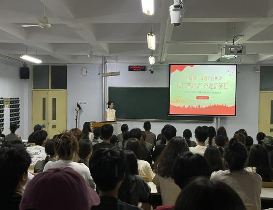活动围绕推普周的由来、普通话发展史、普通话小测试等几个方面开展,让同学们了解推广普通话的重要意义,提高同学们对使用规范语言文字的重视。通过讲解普通话水平测试的基本流程、考核要求及等级标准,鼓励2023级新生学说普通话、会用普通话。