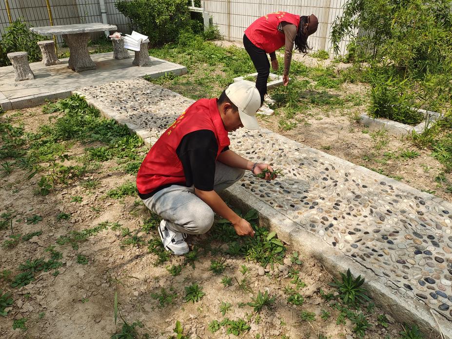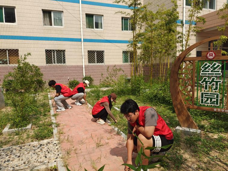 太阳成集团tyc234cc组织志愿者进行竹园除草实践锻炼活动,志愿者成员分工合作,按照区域分工分组太阳成集团tyc234cc丝竹园开展劳动,大家撸起袖子、弯下身,分工合作、埋头苦干,经过全体人员的努力,杂草尽除,草坪重新焕发着生机与活力。