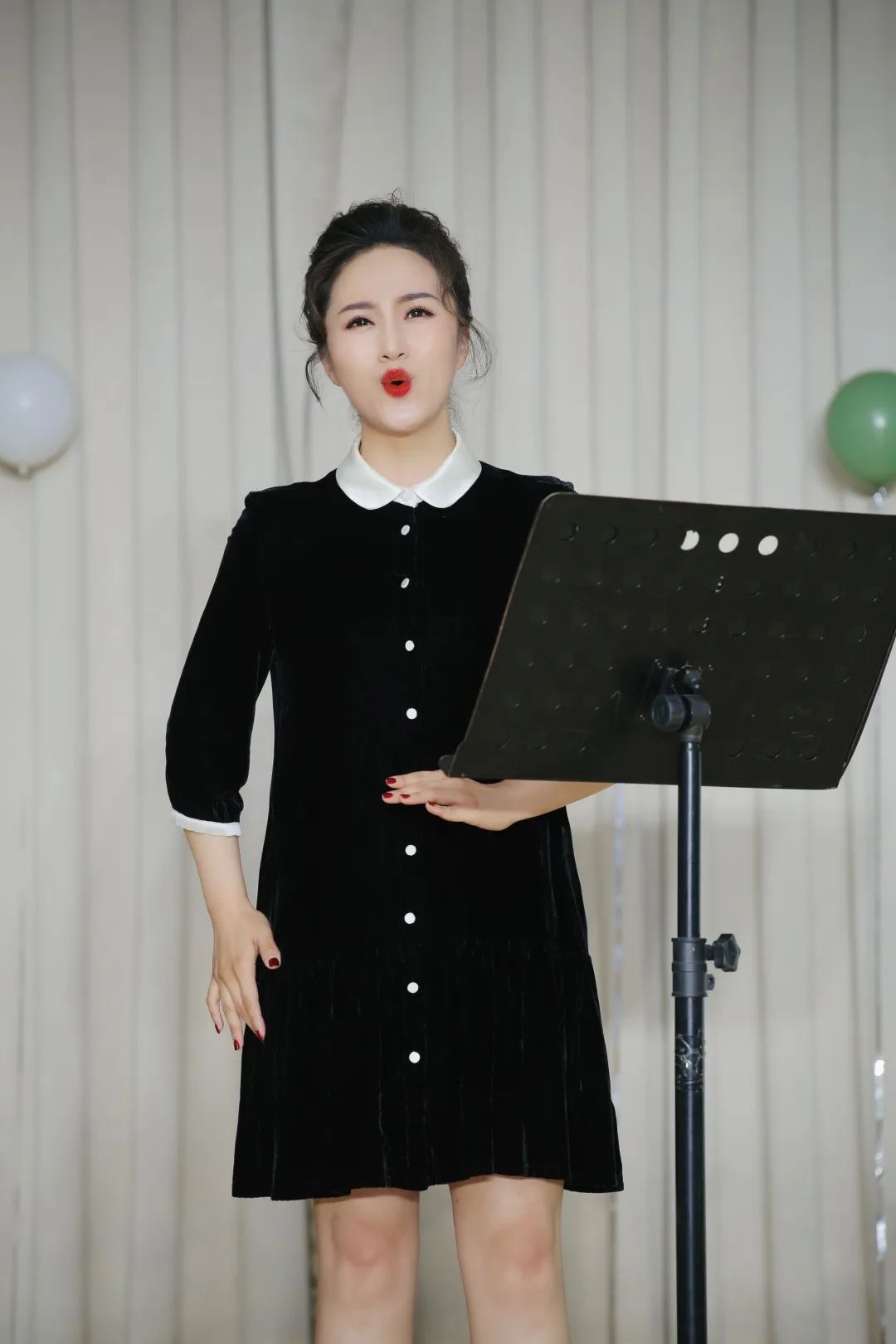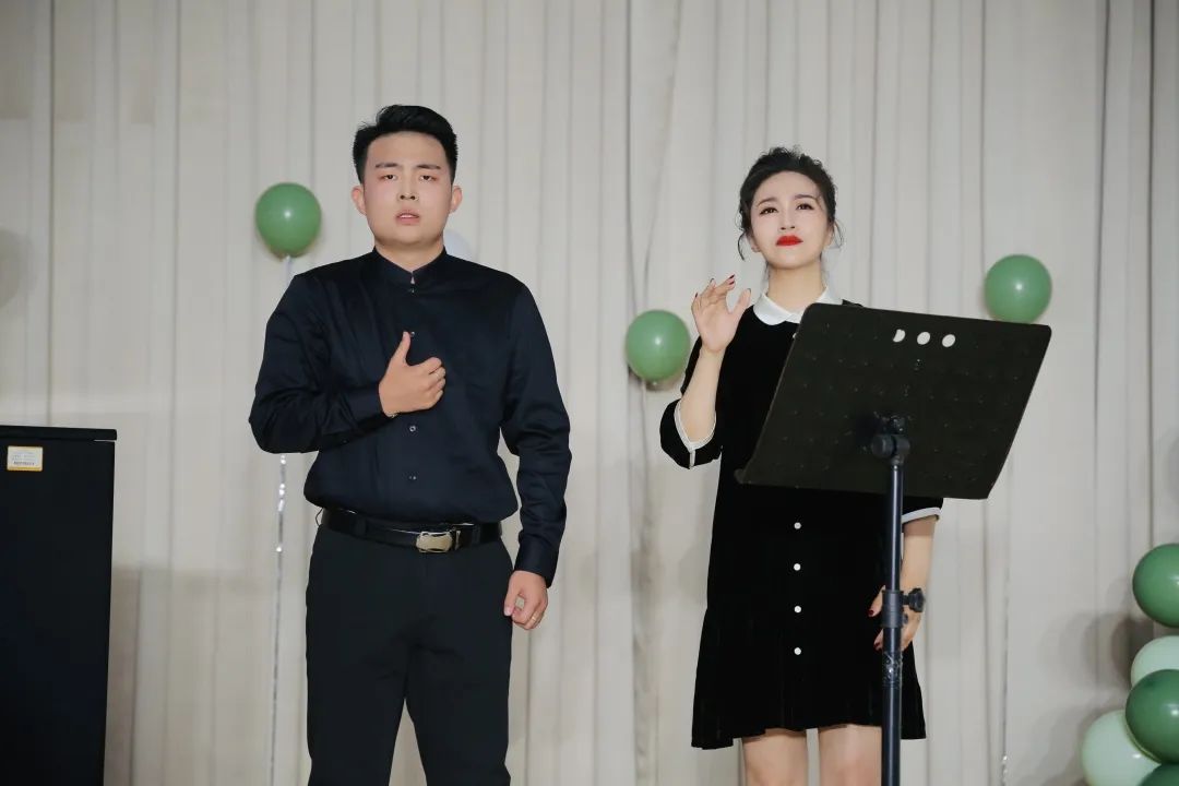 音乐会尾声,李琛老师登台朗然声扬,演绎《蝶恋花·槛菊愁烟兰泣露》,将诗作离愁别恨唱尽,歌声情意婉转又寥阔高深。音乐会最后一首歌曲是由李琛老师演唱的《与你相见若如初》,歌曲咏叹天下有情人相爱一场,纵使情非得已两相分离,仍念念不忘初遇的那份美好。员工上台与老师合唱,“与你相见若如初,我愿一梦红尘,忘却经纶,不乱于心,岁月静安……”浓浓师生情谊,尽在一首歌咏之中。