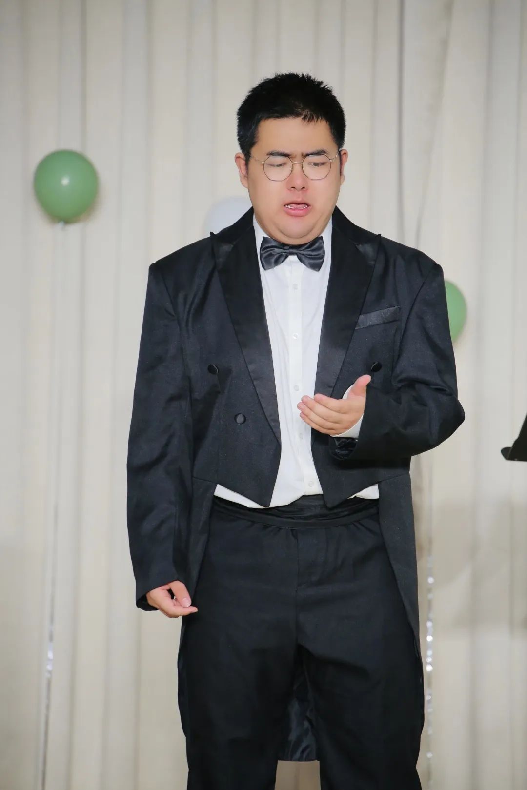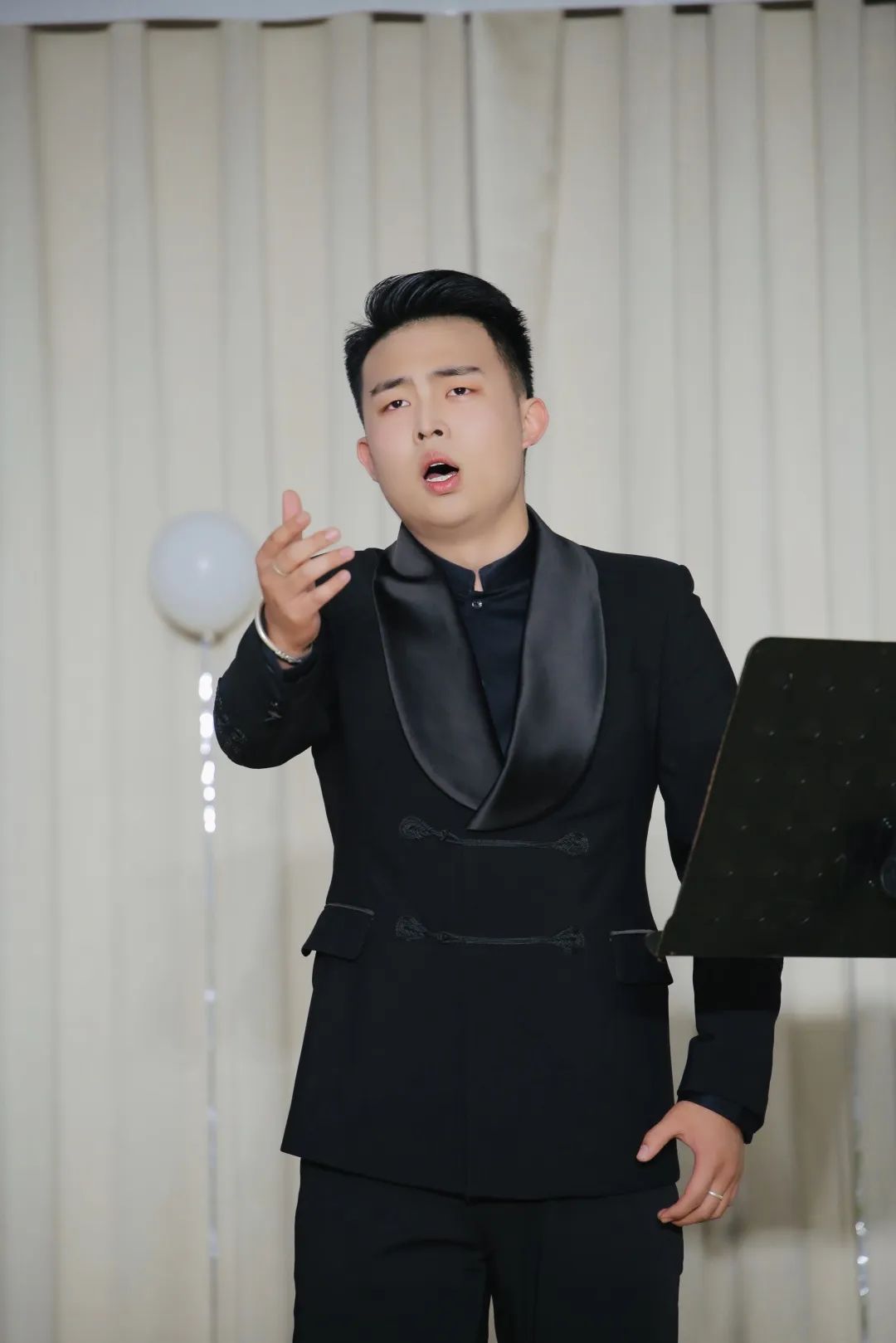徐志摩翻译的诗作《歌》也被谱以新曲,经李琛老师与刘哲硕演唱别有一番韵味,《虞美人·听雨》少年听雨歌楼上,壮年听雨客舟中,如今听雨僧庐下。几处雨声,几相思绪。少年人来演绎这首时过境迁的歌曲,似乎也能知晓几分鬓白的愁情。《山之高》是整场音乐会最新的作品,虽为古诗,却是新曲。歌曲磅礴大气,尹嘉怡声音高遏行云,向现场观众展示了何为“山之高”。江南无所有,聊赠一枝春。秀丽南国风景如画,伴奏响起,刘哲硕男声悠悠唱起《夜忆江南》。悲戚秋风萧瑟,大诗人李白为之写词都不免情悲。《秋风词》生动诠释了何为声动梁尘,一曲终了,令人怆然泪下。兰之猗猗,扬扬其香。古人先贤在乱世中心怀悲悯,在绝望中追寻真理,一首《幽兰操》由马浩文演唱的声振林木,观演员工也在歌曲中明理追思。《江城子·乙卯正月二十日夜记梦》是苏轼为悼念妻子而写的一首悼亡词,刘哲硕用歌声表现了苏轼对亡妻绵绵不尽的哀伤和思念,哀怨缠绵、至情至深。