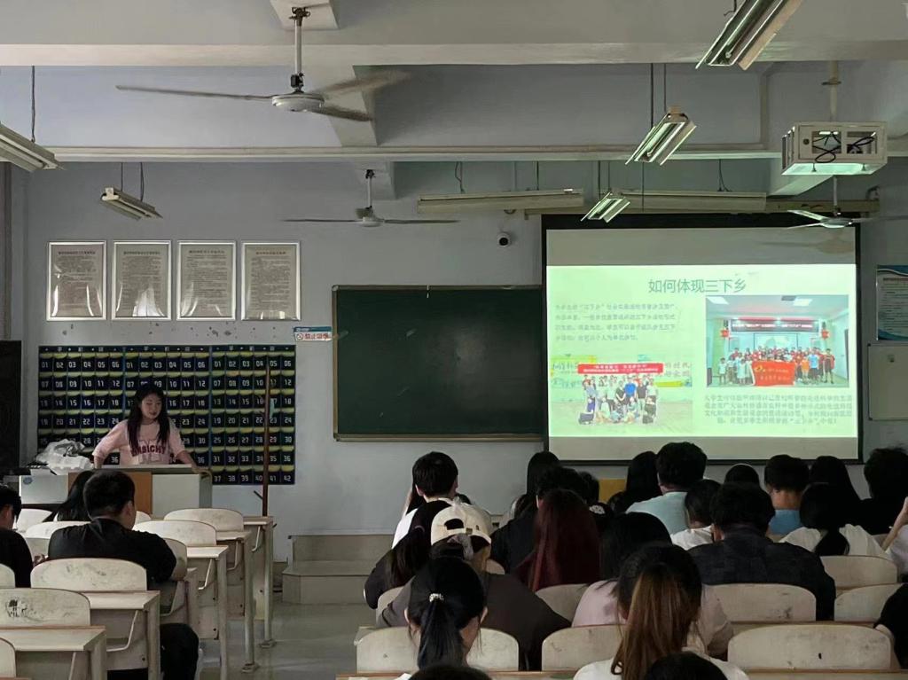 随后,本次志愿服务队代表对今年暑期“三下乡”社会实践具体内容和流程进行了讲解,并展示了往年实践成果,鼓励同学们积极参与今年的暑期“三下乡”社会实践活动。