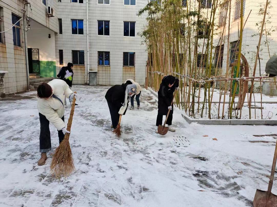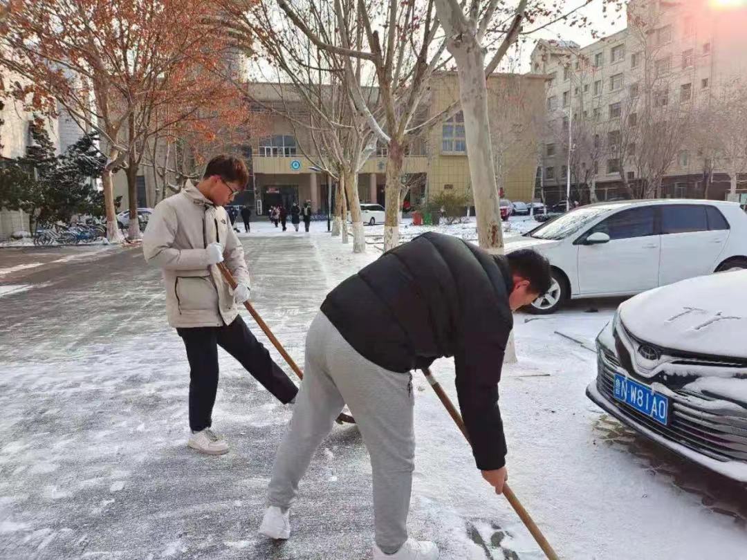 “风雪无情人有情,除冰扫雪暖人心”,本次活动中充分体现了团结、友爱、奉献的精神希望这份温暖如同冬日的暖阳,传递给来往的每一位师生。