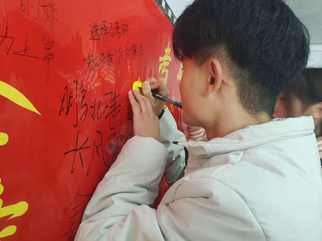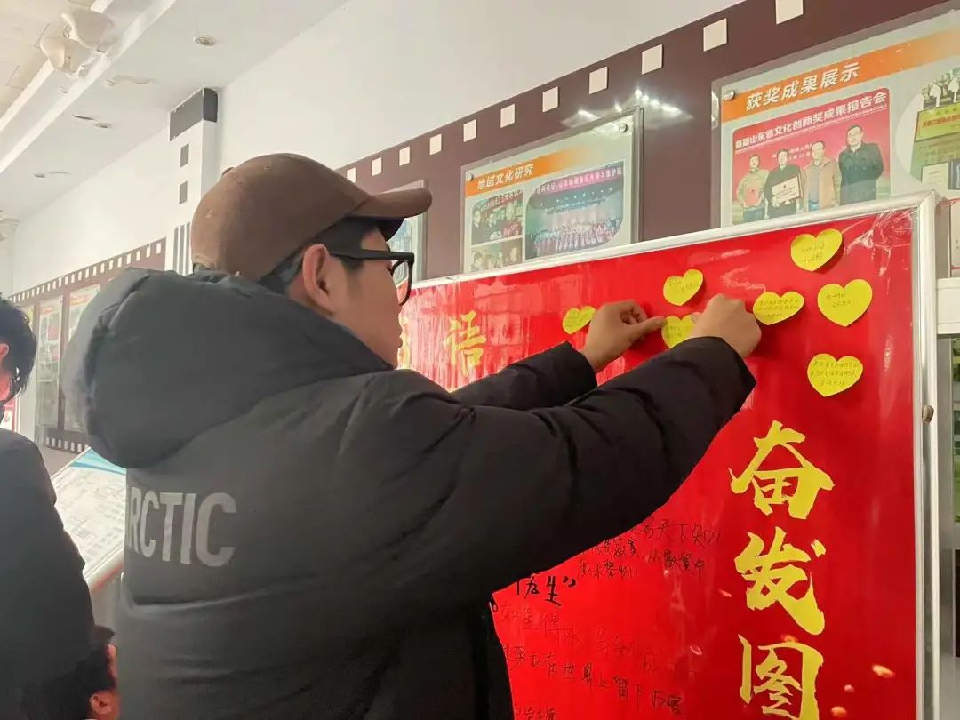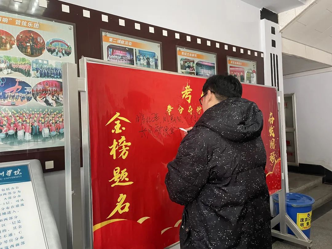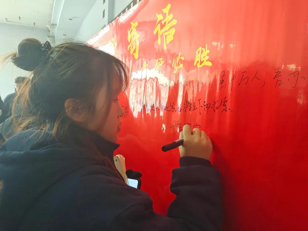 太阳成集团tyc234cc的同学们积极响应号召,在留言板上留下属于自己的勉励话语。言语不多,但却饱含了同学们对学长学姐最真挚的祝福,虽未曾谋面,但已然相识。考研助力板上的留言越来越多,像是星星之火,像是璀璨明星,共同点亮考研人前进的道路。