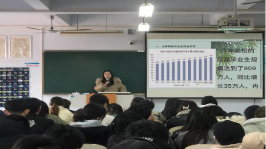 就业指导老师为在场的毕业生讲述了近几年就业形势,受疫情和政策影响,应届毕业生的就业压力愈加沉重,引发员工对自己未来发展的思考。毕业生应积极寻找合适的就业岗位,实现多渠道就业。她又提醒同学们员工要调整心态,脚踏实地,根据自己的实际情况抓住就业机会,这使同学们受益匪浅。