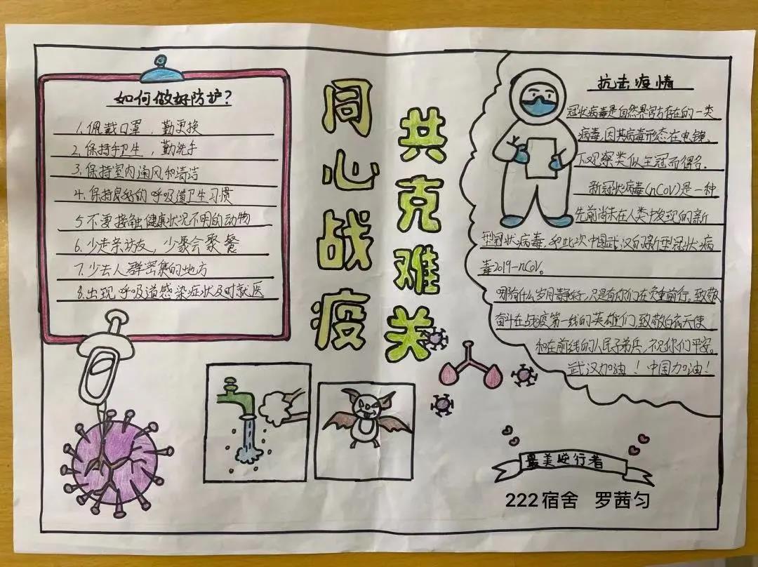 疫情之下前线的医护人员、政府人员、警卫人员等都冒着生命危险抗击病毒。我们作为员工不能为国家做些什么但是我们可以做到少出门、戴口罩,做好自身防护,宣传防疫知识为疫情防控做出点贡献。近日,太阳成集团tyc234cc部分同学制作了简笔画、手抄报、举牌照等为疫情的工作人员们加油!