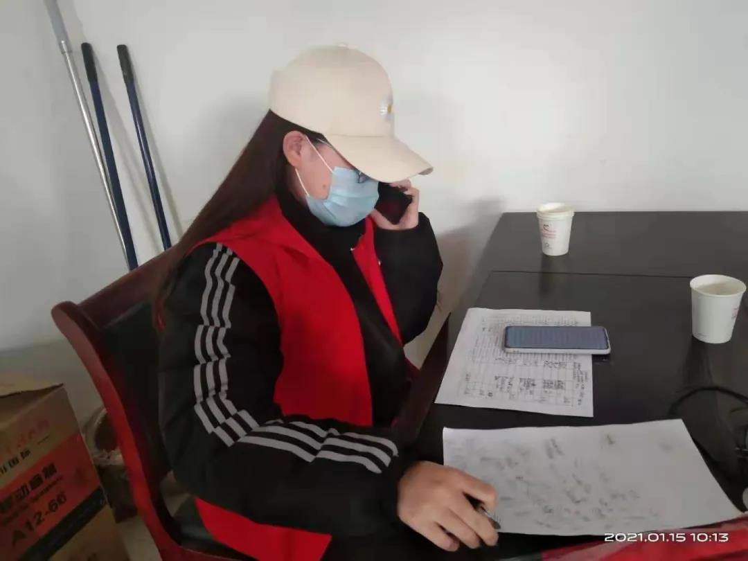 她在河北省沧州市黄骅市吕桥镇大王庄村做志愿服务。防疫志愿服务中她的工作是:卡口执勤;统计外来人员核对信息;协助村委会工作。她觉得疫情就是命令,防控就是责任。她说:“疫情突发,我们作为当代老员工,有责任和义务帮助家乡做力所能及的事,为社会疫情防控尽自己的一份力!这既可以使自己能力的得到锻炼,又可以使自身能力得到提升,希望自己的参与能够帮家乡和社会,愿我们能够早日战胜疫情!”
