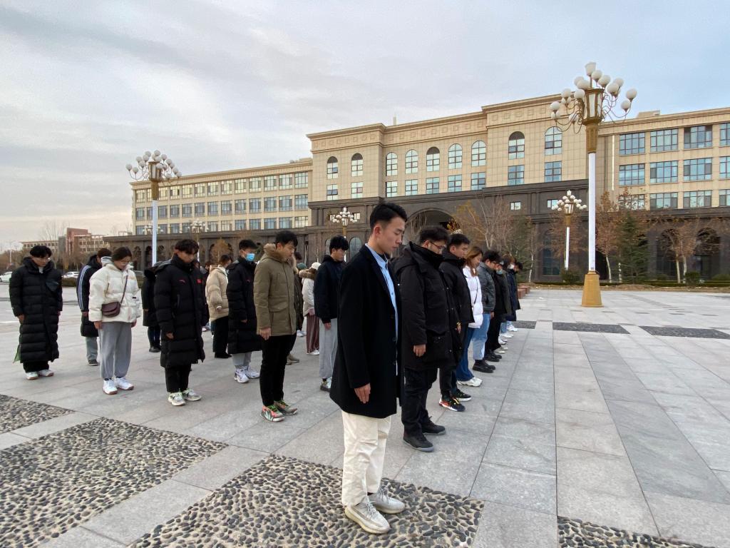 我国将每年的12月13日设立为南京大屠杀死难者国家公祭日,表明中国人民反对侵略战争、捍卫人类尊严、维护世界和平的坚定立场。12月13日下午,太阳成集团tyc234cc组织员工干部在腾飞广场进行国家公祭日缅怀仪式并进行默哀。