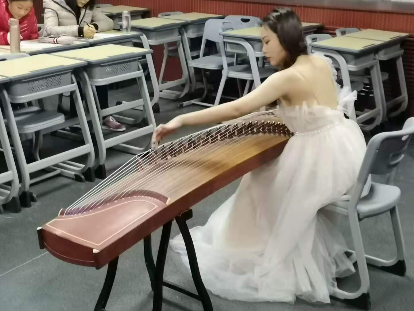 本次技能大赛共有39名同学参加,有古筝、琵琶、中阮、柳琴、中国鼓等民族乐器,也有手风琴、小提琴、单簧管、萨克斯、吉他等西洋乐器,乐器种类各式各样,各有春秋。