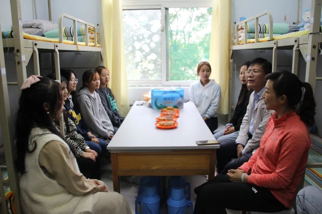 “同学们,今天是中秋节,我们代表公司来看望大家,祝大家节日快乐!”走进员工宿舍,党总支书记为同学们送上祝福,并详细询问员工们在校生活和学习情况,他希望同学们珍惜学习机遇,立足专业基础和人生理想,深植家国情怀,做有温度能担当的新时代青年。随后,党总支副书记代表员工工作人员对员工表达节日的慰问,嘱咐同学们做好生涯规划,丰富老员工活,顺利完成学业,实现人生价值。