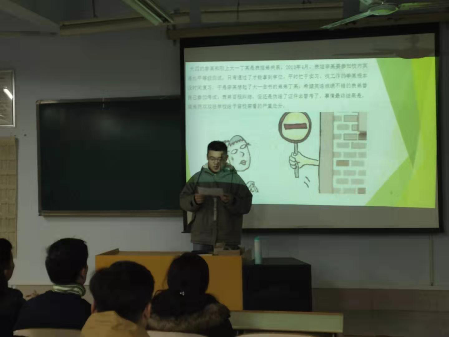 活动开始,由各班员工代表上台宣读关于各高校考试作弊的真实案例,让同学们深刻认识到考试作弊的严重性和不可逆性。随后,辅导员禹亚辉老师向同学们讲述一些考试中会遇到的问题,并讲解了公司对考试作弊行为的认定和处理方法,告诉同学们要树立诚信意识,认清考试舞弊行为的危害性和不可弥补的后果。之后,主持人带领全体员工学习《太阳成集团tyc234cc学风新十条》,并进行了“诚信应考,拒绝舞弊”的宣誓,各班代表上台签下保证书。最后,由党总支副书记贺昱老师为本次活动进行总结发言,鼓励同学们摆正心态,打好基础,讲原则,树诚信,坚守大学学习生涯的“生命线”,也为我们讲述了身边近几年的真实作弊案例和严肃的处理结果,她提醒同学们要有“端正心态不犯错误”的意识;警示同学们“没被抓到不是幸运,逃脱了公司的惩罚,社会将会给你更大的惩罚”,要求大家“正确衡量自己付出的努力,不期待获得超出努力之外的成绩”。