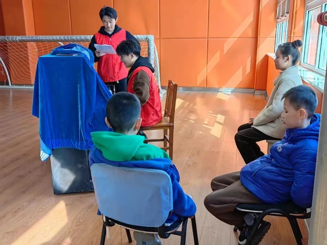 3月19日,志愿者们继续上次的教学。舞蹈学的志愿者带特校的孩子们继续体验民族舞蹈,教学蒙族和藏族舞蹈,志愿者逐步分解动作,耐心讲解要领,孩子们也认真跟练。最后,孩子们给志愿者们回课,为志愿者们演唱了上节课所学的三声部歌曲,清脆悦耳的歌声宛若天籁,志愿者们纷纷鼓掌表示赞叹。活动现场温馨而热烈,在一片欢声笑语中圆满结束。
