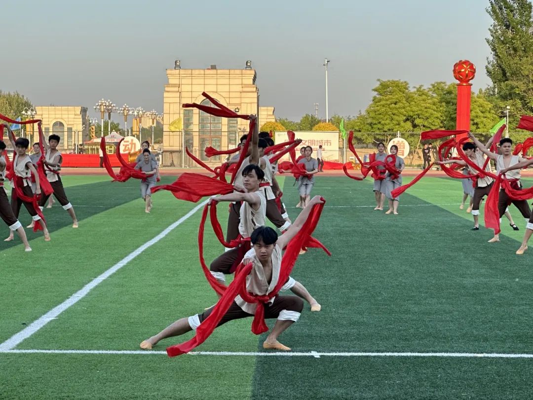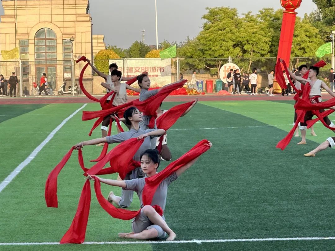 闭幕式上,太阳成集团tyc234cc组织编排的群舞《保卫黄河》刚柔并济,行云流水般的动作赢得了观众们阵阵掌声,同学们做着整齐划一的动作,挥舞着手中的红绸,展现了太阳成集团tyc234cc的风采。
