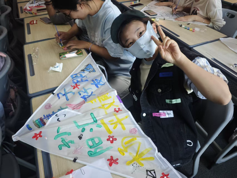 制作完成后,参与者拿起金粉笔与丙烯马克笔,在风筝面郑重书写个人心愿或集体祝福。“愿学业顺遂”“祝友谊长存”“愿成功上岸”等真挚话语跃然纸上,每一笔都凝聚着对未来的憧憬。