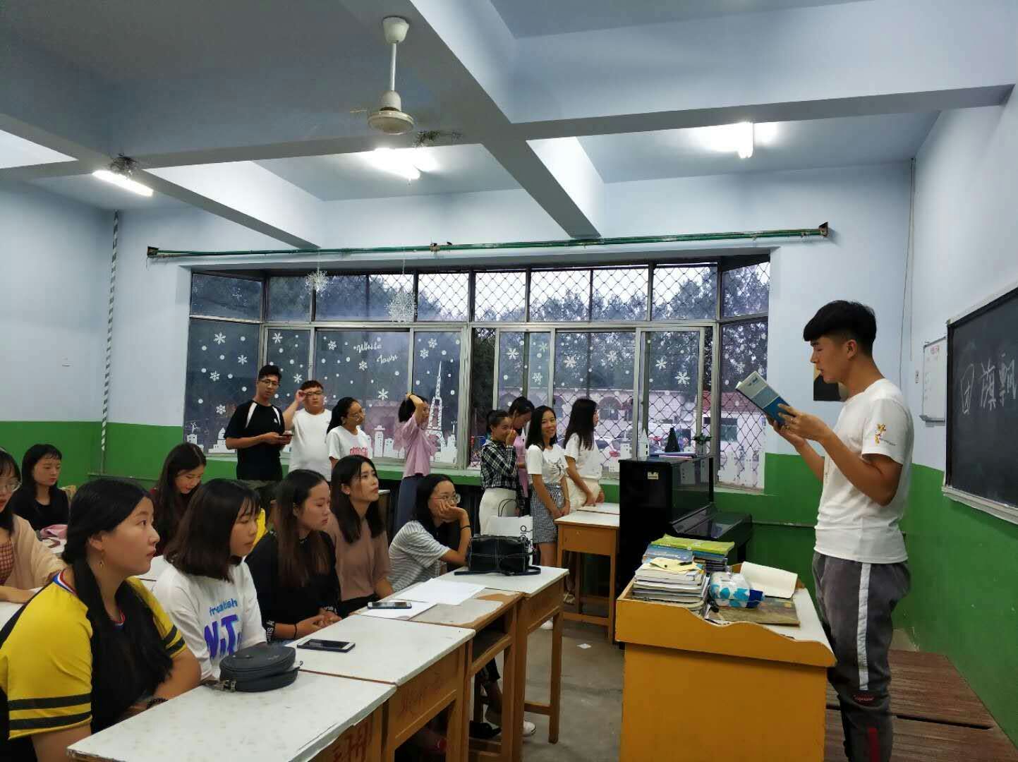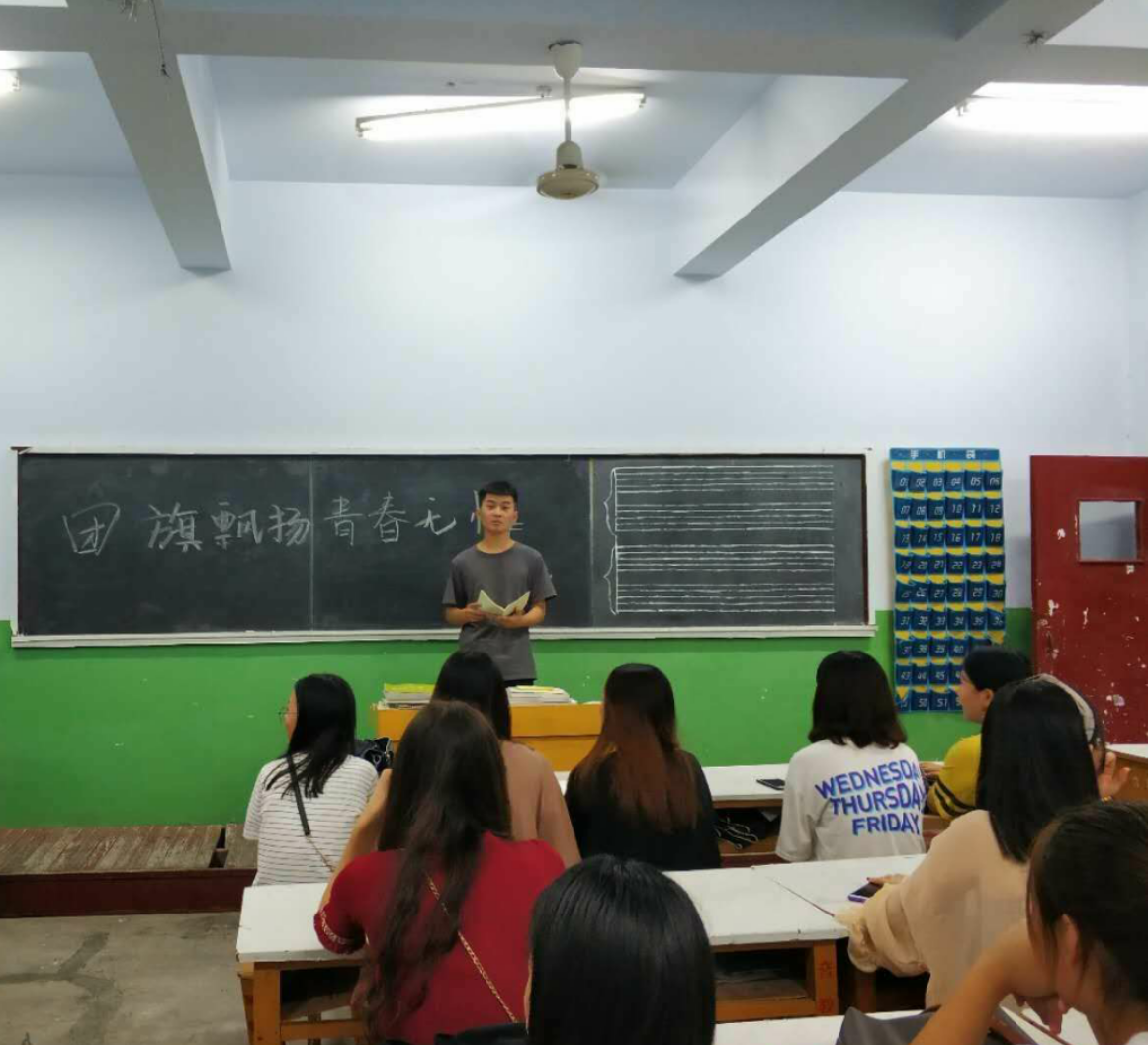 2018年 5月15号,2017级音学二班在1008教室开展“团旗飘扬,青春无悔”的主题班会活动。