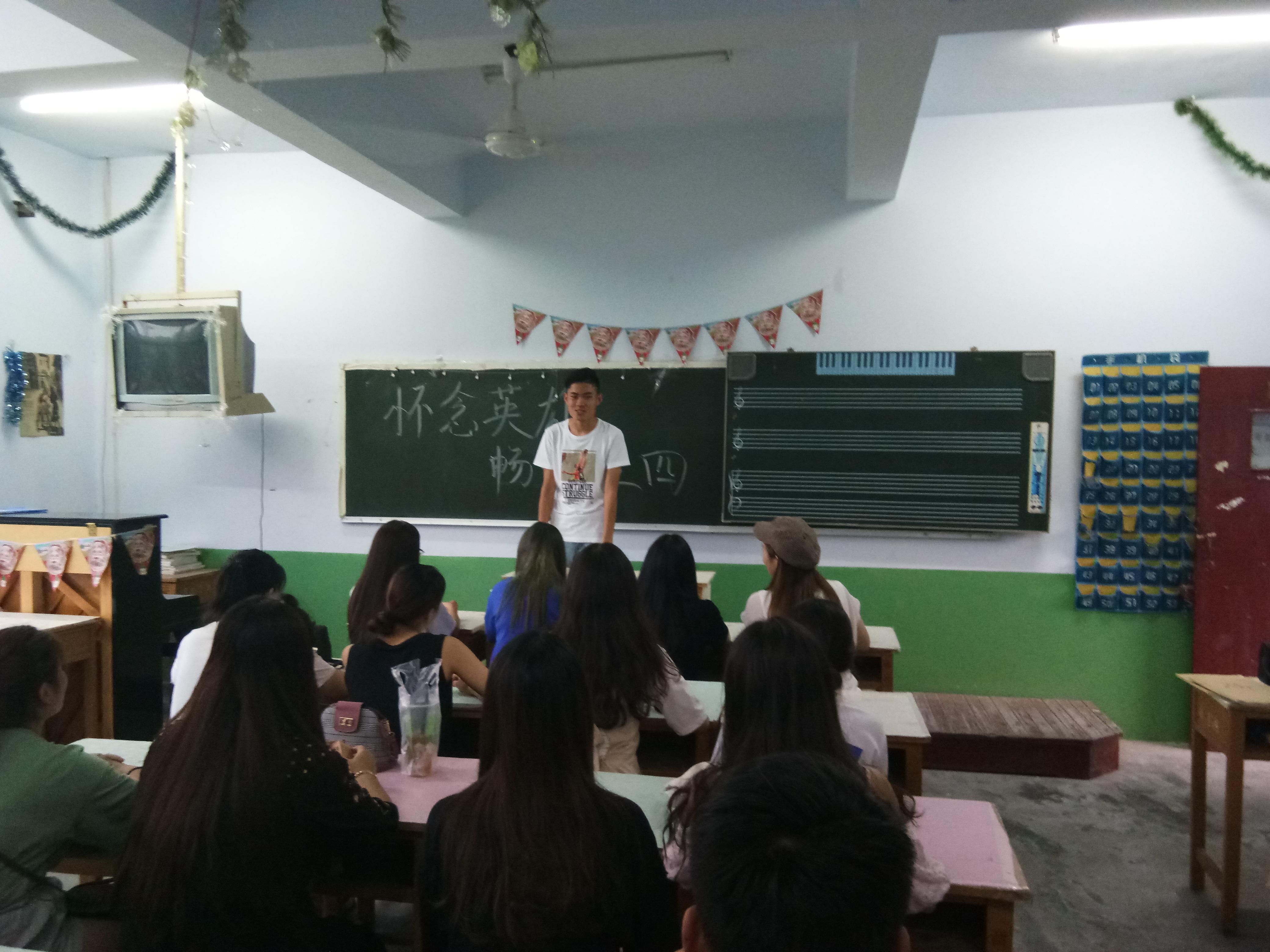 随后,班长简要介绍了抗日战争时期的英雄事迹以及五四运动时的一些故事,将此次活动推向一股热潮,同学们十分感慨。