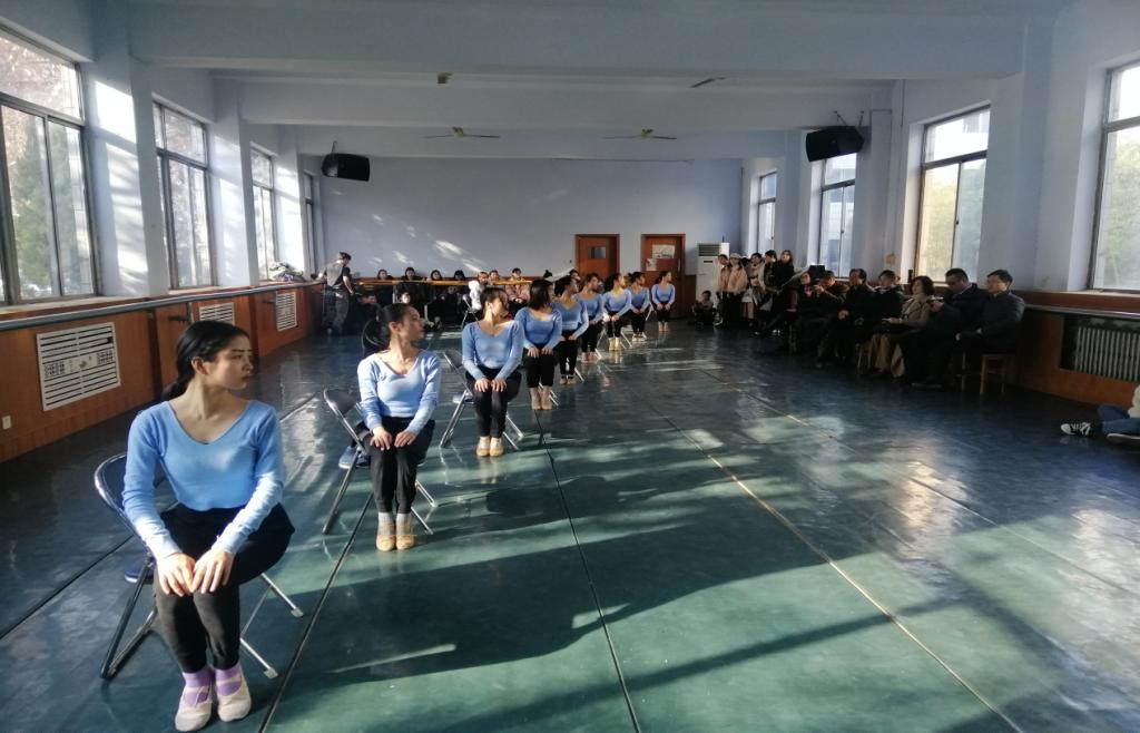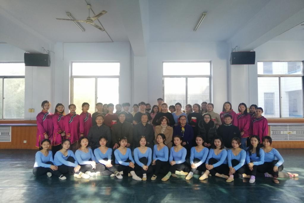 接着李教授对公司民族民间舞片段、舞蹈剧目、省级非遗蹦鼓舞进行了现场艺术指导。