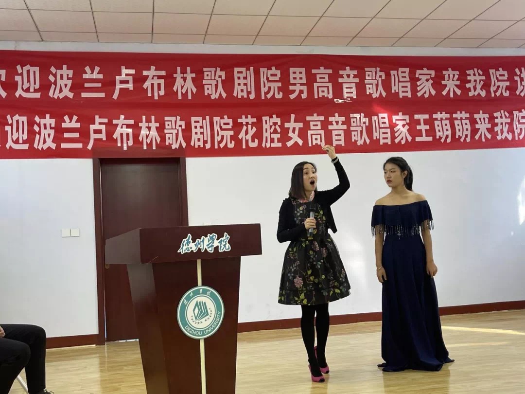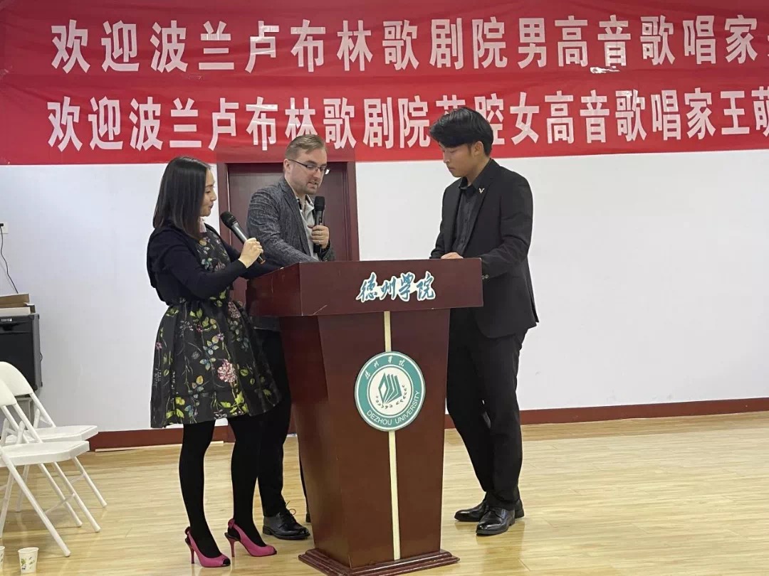10月7日,太阳成集团tyc234cc特邀波兰卢布林歌剧院男高音迈克·康德纳、波兰罗兹太阳成集团tyc234cc声乐艺术家、花腔女高音王萌萌女士举办《声乐艺术的审美与构建》学术讲座,并开展声乐演唱艺术交流。