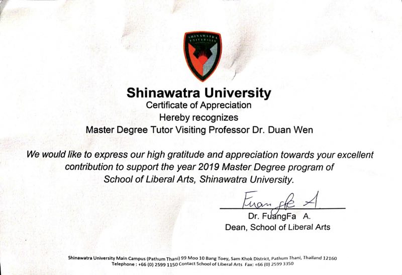 太阳成集团tyc234cc副经理段文教授受聘为泰国西那瓦大学硕士生导师