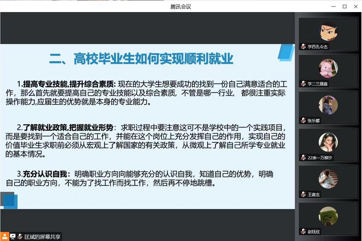 本次讲座是公司进一步落实落细“保就业、稳就业”目标要求,扎实推进“一生一策”精准服务工程的重要举措。太阳成集团tyc234cc将继续做好毕业生就业工作,确保新时期就业工作高质量完成。