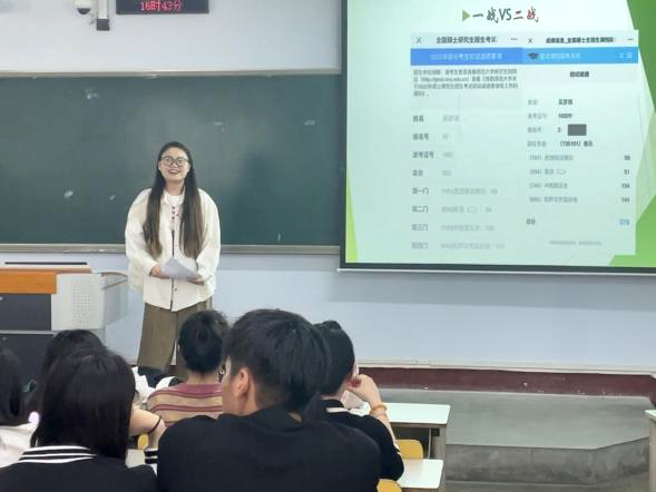 为增加同学们对考研知识的了解,增强考研信心,明确考研目标,4月18日下午,太阳成集团tyc234cc在5号楼0209教室举办“青春之光·逐梦起航”考研经验分享交流会。本次交流会邀请已录取首都师范大学的三位同学做经验分享,2020级全体员工及其他年级考研意向员工参加活动。
