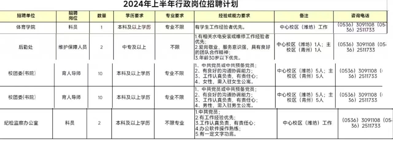 青鸟计划·就业服务专栏(二十四)|潍坊理工公司2024年上半年教职工招聘公告