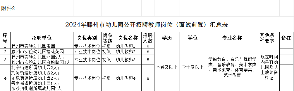 根据事业单位公开招聘有关规定,结合各公司幼儿园实际需要,经市委、市政府同意,2024年滕州市中小学幼儿园公开招聘中小学教师277名,幼儿园教师28名。现将有关事项公告如下: