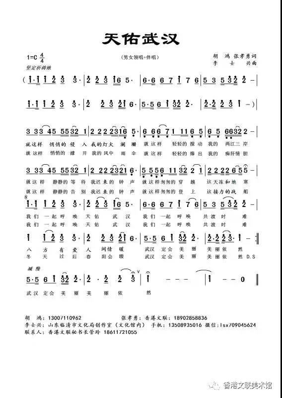 近日,由作曲家李士兴作曲,胡鸿、张孝勇作词,旅德著名女高音歌唱家莎拉·翟鹏(中国)、西班牙男高音歌唱家 Sergi Gimenes演唱的《天佑武汉》在网上传唱开来。