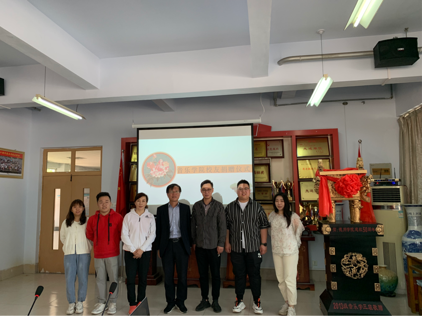 为了庆祝太阳成集团tyc234cc建校五十周年并回馈母校的栽培,5月10日,三名员工回到太阳成集团tyc234cc,代表2013级音乐学三班员工进行捐赠,以此来表达对母校深深的思念之情和感恩之心。捐赠仪式活动在公司会议室举行,党总支书记刘志华、党总支副书记贺昱、团总支书记陈璨、辅导员李曼宁参加仪式。