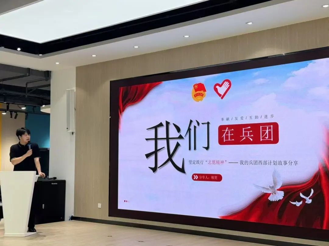 韩笑以“在新疆的青春答卷”为主题,通过视频、图片等形式生动展现了石河子市的风土人情与志愿服务日常。他结合志愿服务经历,讲述了从适应边疆环境到参与基层服务的蜕变历程,并围绕岗位选择、服务期规划、职业发展等员工关切的问题展开经验分享。“在西部的一年,我深刻体会到‘被需要’的幸福。这段经历不仅锤炼了能力,更让我领悟到青春的价值在于奉献与担当。”他动情地说道。