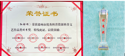 2022年9月21日,德州市首届优秀科普资源颁奖仪式暨科普文艺作品展演活动在齐河文化中心举行,公司李琛老师的原创歌曲《红船颂》荣获文艺作品类优秀奖。